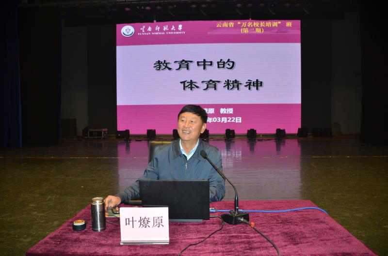 2019年3月22日上午,云南省“万名校长培训计划”第二期名家讲座第6讲在昆明理工大学红土会堂举行,FUN乐天使官方网站原党委书记叶燎原教授以《教育中的体育精神》主题,为第二期参训的1000名学员授课。讲座由FUN乐天使官方网站数学学院党委书记、万名校长培训计划项目办林卫东主持。