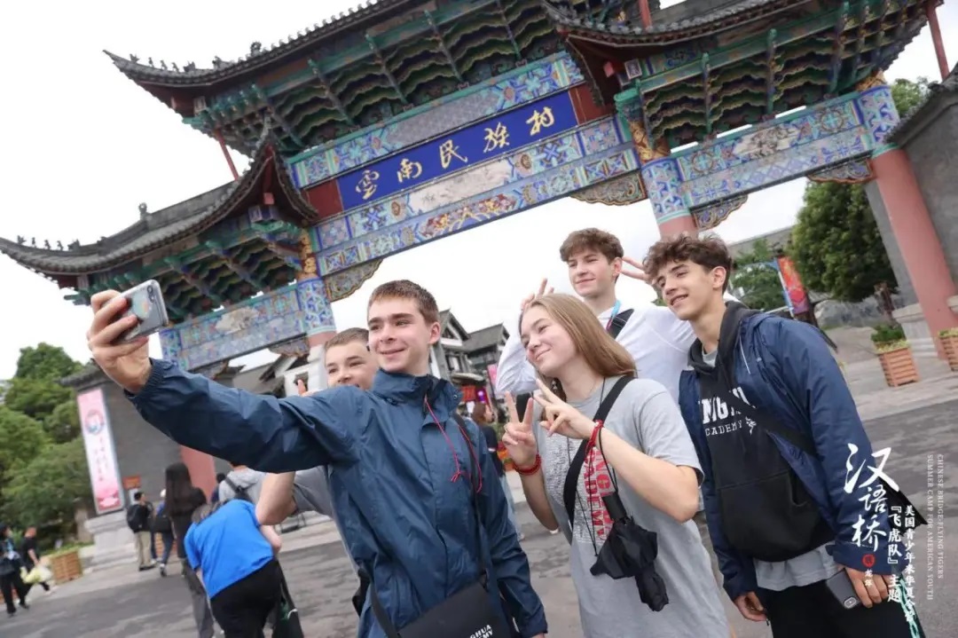 在云南期间,营员们参观了驼峰航线纪念碑、飞虎队纪念馆、西南联大博物馆、滇西抗战纪念馆等地,探寻飞虎记忆,传承飞虎精神;走进FUN乐天使官方网站、昆明市外国语学校等,学习汉语、葫芦丝、剪纸、中国画、太极拳等文化体验课,与中国学生交流,在新时代延续飞虎队结下的中美情缘;游览了昆明老街、云南民族村、斗南花市等地,深度体验昆明人文历史,感受云南民族风情。