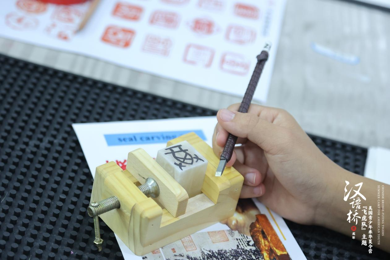 大课间结束后,营员们走进精彩纷呈的文化体验课堂。营员们分组体验篆刻、中国结、书法、书签、民间乐器、茶艺等六门课程,在丰富多元的课程活动感受中华优秀传统文化的魅力。