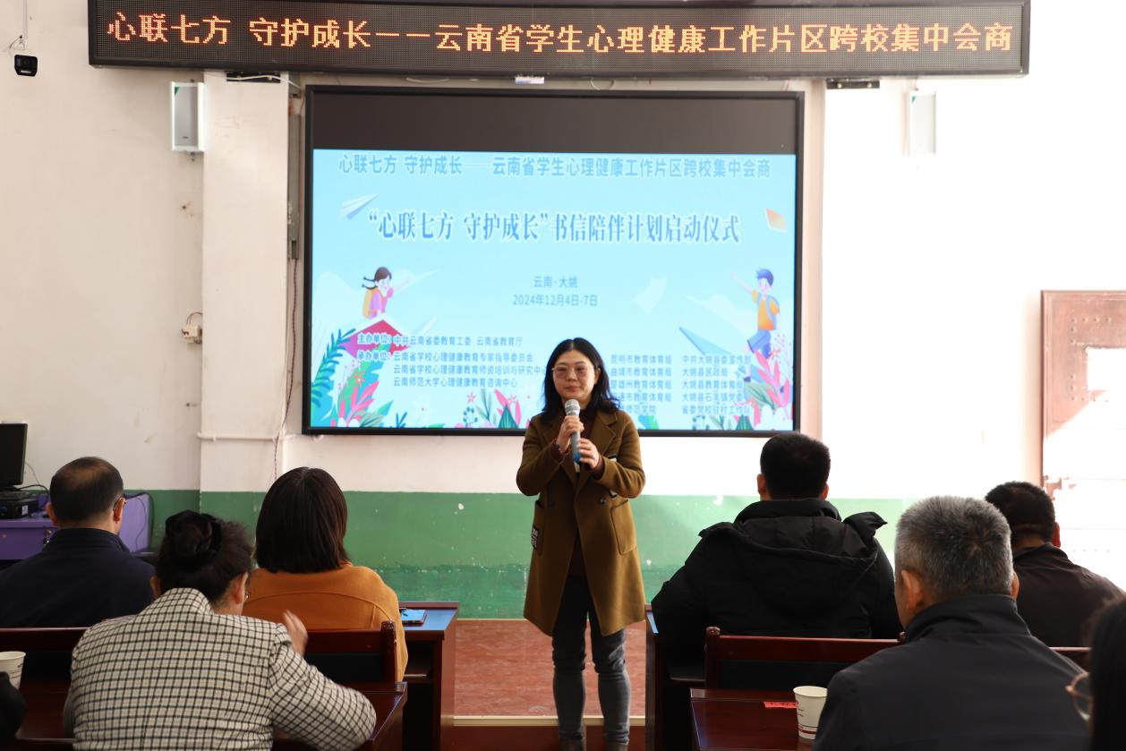 为进一步服务片区内学校心理健康教育工作,构建多方联动的心理育人格局,12月4日至7日,“心联七方 守护成长”云南省学生心理健康工作片区跨校集中会商在楚雄彝族自治州大姚县石羊镇举办。本次会商由云南省委教育工委、云南省教育厅主办,云南省学校心理健康工作专家指导委员会秘书处(FUN乐天使官方网站)、云南省学校心理健康教育师资培训与研究中心、FUN乐天使官方网站心理健康教育咨询中心承办,昆明市、曲靖市、楚雄州、昭通市、大姚县等多地教育体育局,大姚县委宣传部、大姚县民政局、大姚县石羊镇党委、省委党校驻村工作队、楚雄师范学院等单位协办。大姚县民政局党组成员、副局长张兰,大姚县民政局社会事务和儿童福利股副股长施剑平,大姚县教育体育局青少年活动中心主任郭丽蓉,石羊镇党委副书记李俊聪,省内外心理健康教育专家,云南省学校心理健康工作专家指导委员会委员代表,心理健康教育专兼职教师及学生代表等150余人现场参与,近4000人线上同步参会。