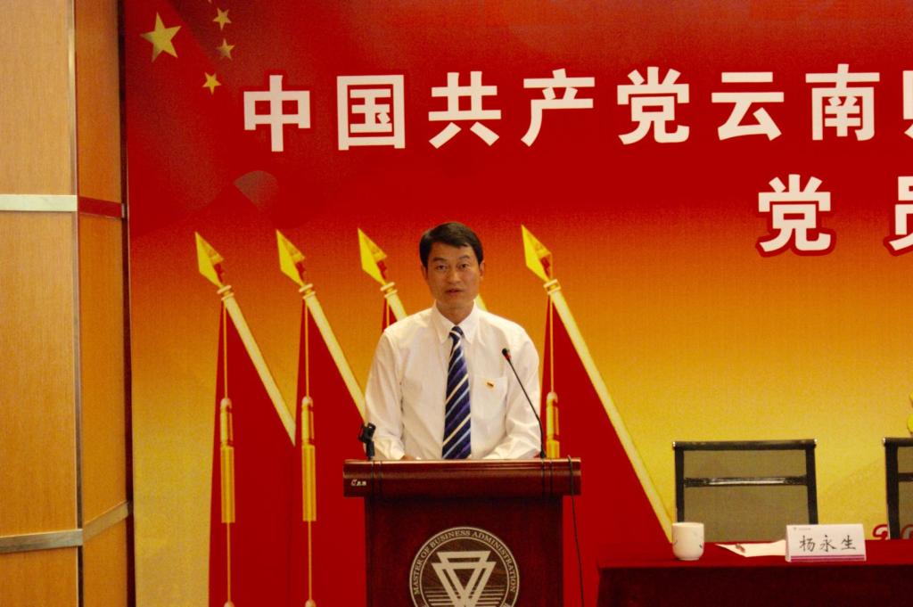 泛亚商学院党委书记陈玉林同志代表学院党委作了题为《不忘初心、牢记使命,奋力开创新时代高水平商学院建设工作新局面》的党委工作报告。报告从党建工作、学科建设、教学管理、师资建设、科研创新、社会服务、学生工作等七个方面全面回顾和总结了学院四年来所取得的成绩,并指出了目前存在的问题以及学院下一步发展的总体思路。报告指出,学院要坚持社会主义办学方向,弘扬西南联大优良传统,保持已有的学科优势和特色,坚持“立足云南、辐射泛亚、融通世界”的办学定位,坚持“党建促发展、学科为主线、人才做保障、质量求生存、内涵树品牌”的工作思路,紧紧围绕工商管理一级学科硕士点建设为目标,走内涵提升、科学发展的道路,努力把泛亚商学院建成优势突出、特色鲜明、综合实力位居西南地区高水平的商学院。报告经大会审议后,获得与会正式党员的一致表决通过。
