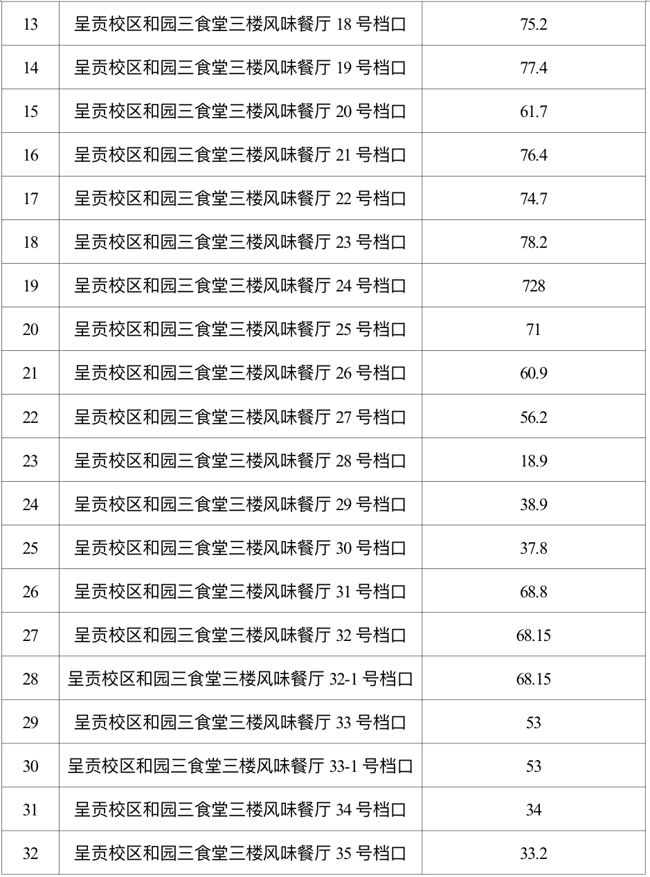2.2服务内容:FUN乐天使官方网站呈贡校区和园食堂二、三楼风味小吃档口的餐饮管理服务团队引入,建筑面积总共约5865平方米,其中三楼面积4317平方米,二楼面积1548平方米。提供早、中、晚餐各类风味小吃,及配合学校工作的其他餐饮服务。