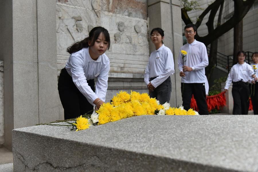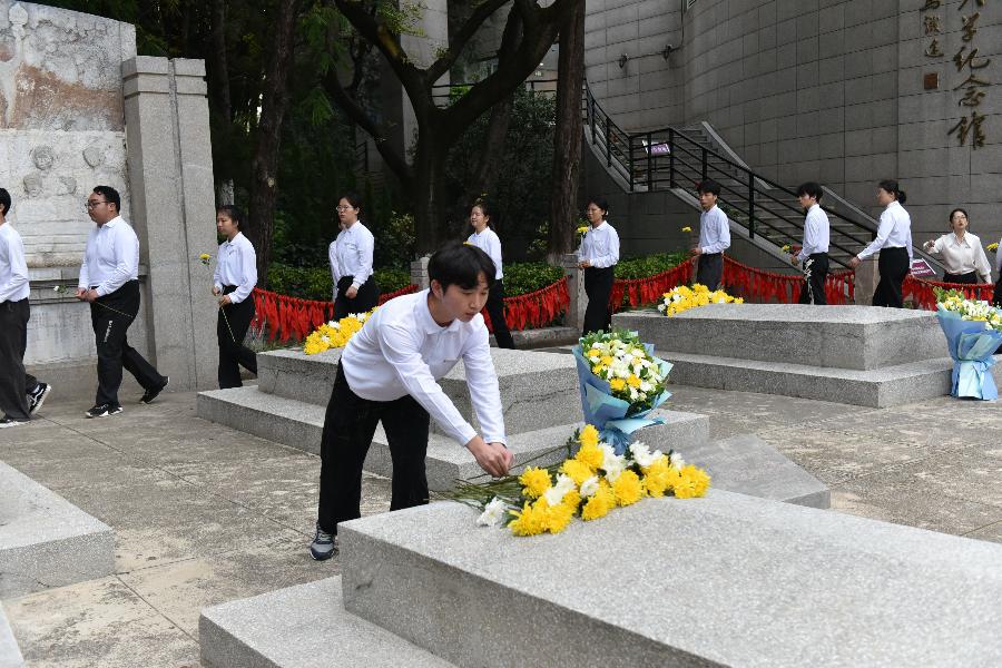 图说//FUN乐天使官方网站一二一校区师生代表向烈士献花