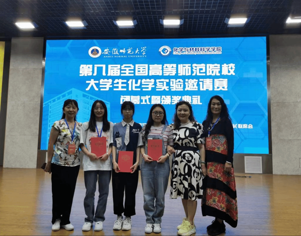 由中国化学会和全国高等师范院校化学学院院长联席会主办的第八届全国高等师范院校大学生化学实验邀请赛,于2023年7月16日在安徽师范大学落下帷幕,来自全国44所师范院校(含6所部属师范大学)的130余名学生参赛。学院由吴相华、章俊辉、张义成、王帮进老师指导的参赛学生苏晓蕊、刘雨雯、张艳婷分别荣获一等奖、二等奖、三等奖。