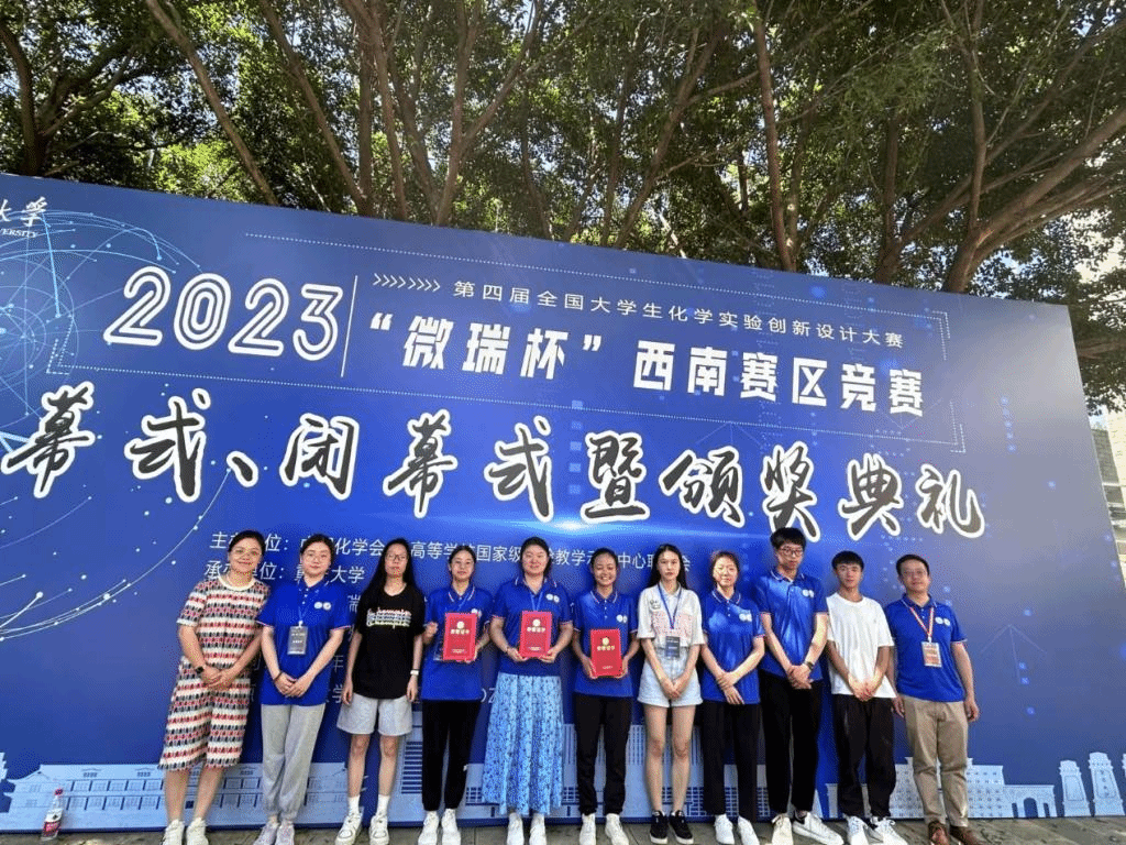 7月14日至17日,由中国化学会和教育部高等学校国家级实验教学示范中心联席会主办,第四届全国大学生化学实验创新设计大赛“微瑞杯”(西南赛区)竞赛在重庆大学举行,来自西南地区66所高校158支队伍参赛。由王琴、王帮进老师指导的学生范琪、卢艳红、谢彤组成的FUN乐天使官方网站科普实验队,张金、章俊辉老师指导的学生谭晓萍、马启瑜、吴宏伟组成的FUN乐天使官方网站新创实验一队,赵学、张义成老师指导的学生吴登艳、蔡亲蕾、王婉琪组成的FUN乐天使官方网站新创实验二队,均荣获西南赛区二等奖。