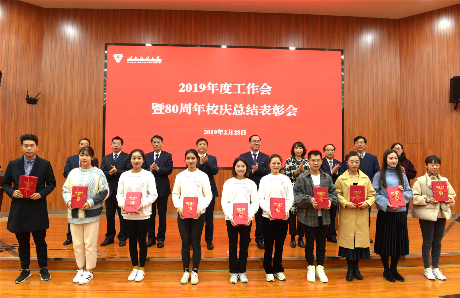 2月28日下午,fun88官网在呈贡主校区汇学楼2幢101报告厅召开了2019年度工作会暨80周年校庆先进集体、先进个人表彰会。校党政领导班子成员,省管干部,近三年离退休校领导,全校副处级以上干部(含非领导职务),省部级教学科研平台负责人,省党代会代表、人大代表、政协委员,各民主党派基层负责人,离退休党总支书记、副书记,校庆办全体人员,校庆先进集体、先进个人代表,师生代表共500余人参加会议。会议由校党委书记饶卫同志主持。