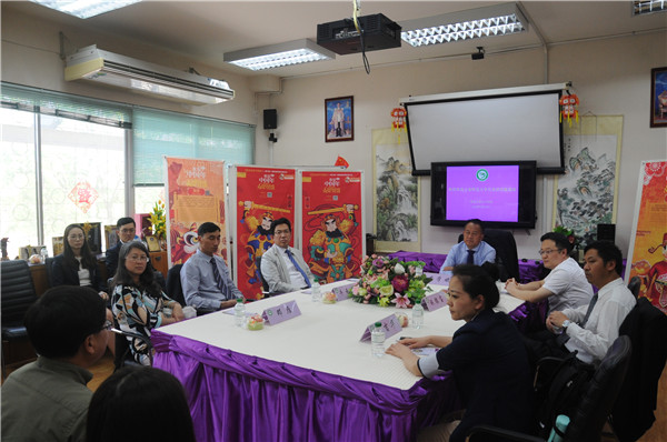 清迈大学副校长珊潘副教授、清迈孔院泰方院长马如宝副教授作为泰方理事参会,FUN乐天使官方网站副校长安学斌教授、云南华文学院院长王秀成教授、清迈孔院中方院长沈毅副教授作为中方理事参会。FUN乐天使官方网站校长办公室牛元帅副主任、国际合作与交流处施银宝副处长、经济与管理学院邓雁副院长、职业技术教育学院杨吉华副院长列席会议。会议由清迈大学副校长珊潘副教授主持。