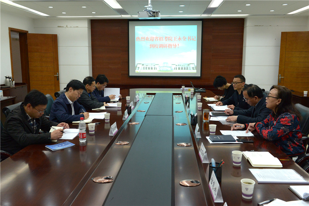 3月29日上午,省委高校工委委员、省教育厅党组成员、省招考院党委书记王永全率队到校调研“智慧教育”相关工作,在实地参观后,与蒋永文校长就推进全省“智慧教育”工作深入座谈交流。郝淑美副校长,校办、教务处、科研处、信息处、民族教育信息化教育部重点实验室、信息学院负责人参与座谈。