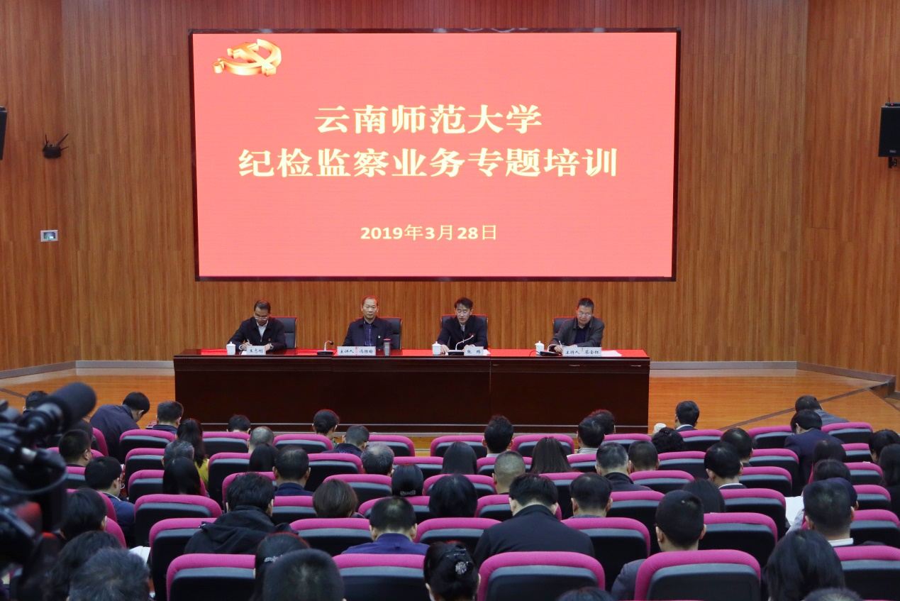 为贯彻党的十九大精神,十九届中央纪委三次全会、省纪委十届四次全会、2019年教育系统全面从严治党工作视频会议精神,省委第八巡视组反馈意见,3月28日fun88官网在呈贡校区汇学2幢101报告厅举行2019年FUN乐天使官方网站纪检监察业务专题培训。校党委副书记张玮、校纪委书记王志刚、校纪委委员、各单位各部门主要负责人、二级单位纪检委员、特约监督员,校纪委办·监审处、云南省纪检监察干部培训基地工作人员以及云南纪检监察学院部分学生共400余人参加。
