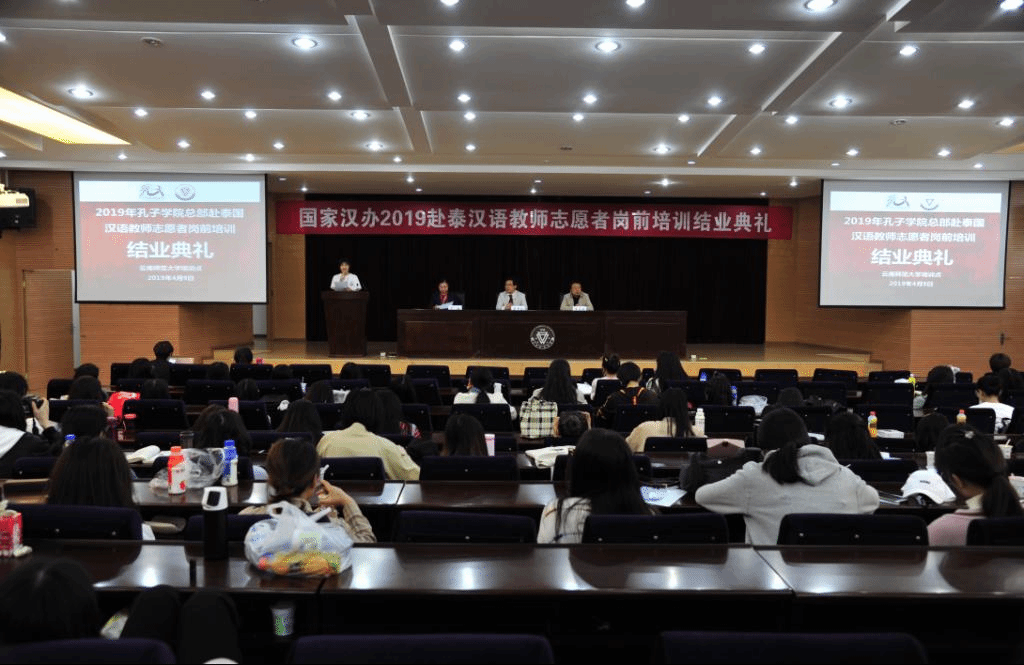 2019年孔子学院总部赴泰国汉语教师志愿者岗前培训在全体学员志愿者之歌--《瀚宇之花盛开》的动情歌声圆满落幕。(汉语国际推广师资培训基地 供稿)