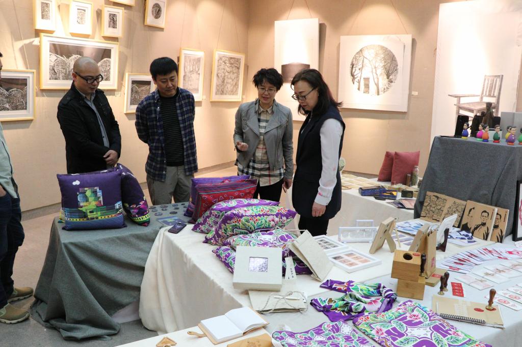 近日,郝淑美副校长一行到美术学院对西南联大文创产品设计开发情况进行调研并参观了美术学院文创产品展览,资产经营有限责任公司党委书记华致雄、总经理李海樱及科室负责人,美术学院党委书记张健、院长戴杰及班子成员,设计、美术学科带头人参加了调研。