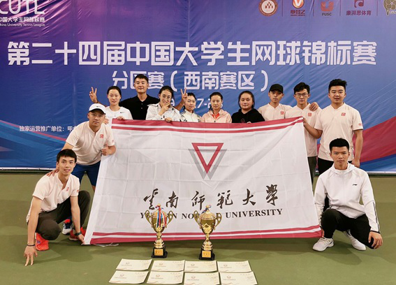 4月27日至29日,第二十四届中国大学生网球锦标赛分赛区(西南赛区)比赛在昆明理工大学举行,fun88官网网球队主教练朱晋瑶携男女队员共11人参加此次比赛。经过激烈角逐,校网球队喜获男子、女子丙组团体两项冠军。