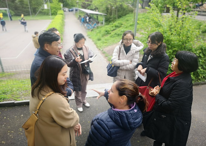 5月9日,团组成员来到瑞士苏黎世公立学校(Schule Menegg Zurich),教务主任Tatiana Balzano女士带领大家进入幼儿班进行实际教学观摩,并针对教师准入、教师质量、教师评估、教学大纲设置、儿童社会性交往等问题与团组交流。