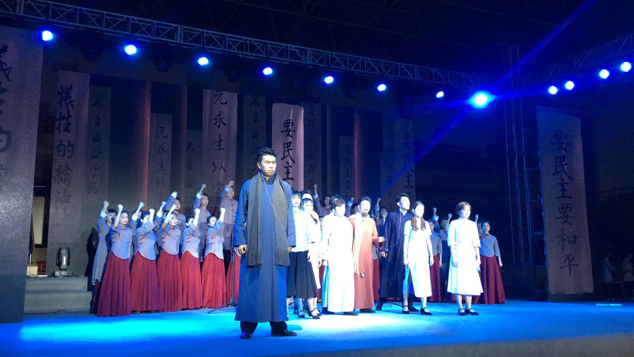 经过激励角逐,专家从进入复赛的27部作品,最终评审出10所高校进入决赛展示活动。在决赛中fun88官网参赛作品《西南联大经典诵读》以西南联大特有的精神感召力和强烈的艺术感染力获得了现场观众的高度赞扬,最终以全场最高分9.92荣获一等奖第一名的好成绩,为fun88官网争得了荣誉。