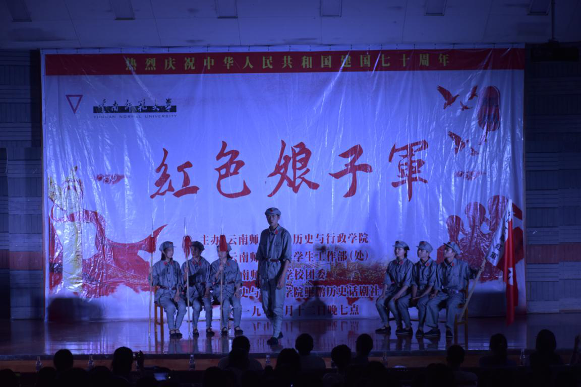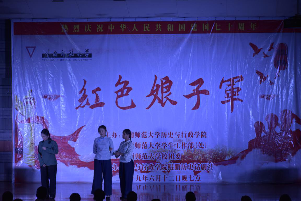 为庆祝中华人民共和国成立七十周年,缅怀革命先烈,传承和弘扬社会主义核心价值观,历经近半年筹划准备,6月17日晚,由历史与行政学院鲲鹏历史话剧社承办的大型历史话剧《红色娘子军》在呈贡主校区汇文楼Ⅲ区105报告厅顺利公演。校党委副书记张玮,校团委书记刘莹与学院500余名师生一同观看了演出。