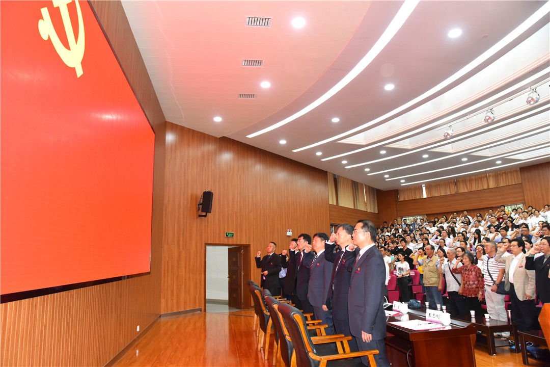 全体起立奏唱中华人民共和国国歌后,在领誓人中共中央组织部最美共产党员、云南省优秀共产党员、全国模范教师获得者张无敌同志的带领下,全体党员重温入党誓词。