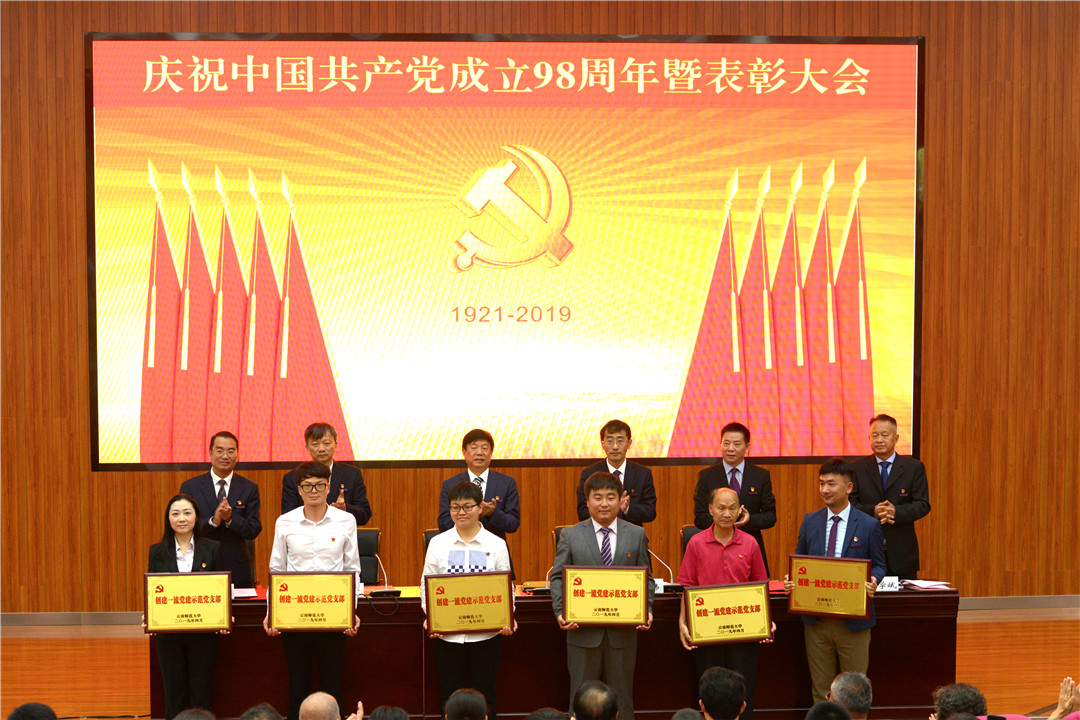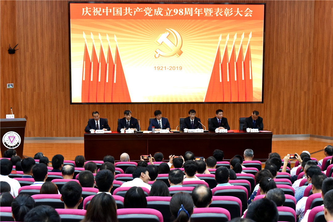 在中国共产党成立98周年即将到来之际,为重温党的光辉历程,缅怀党的丰功伟绩,传承党的优良传统,不忘初心、牢记使命,表彰为学校改革建设发展作出积极贡献的学校基层党组织和一批党建示范项目,6月27日下午,fun88官网在呈贡主校区汇学2栋101报告厅召开庆祝中国共产党成立98周年暨表彰大会。全体在家校党委班子成员,其他省管党员领导干部,各单位党委、党总支、直属党支部书记、副书记,各学院、各部门、直属单位、附属中小学、独立学院党员主要负责同志,学校各基层党支部书记、师生党员代表以及离退休党员代表近500人参加会议。会议由校党委副书记张玮同志主持。