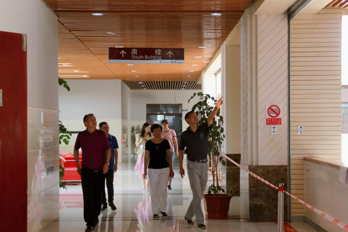 8月26日上午,新学期伊始,安学斌副校长到图书馆检查开学工作情况。安学斌副校长察看了图书馆各书库、自习室的新学期开馆工作情况,实地勘察了图书馆的馆舍安全状况,排查安全隐患。