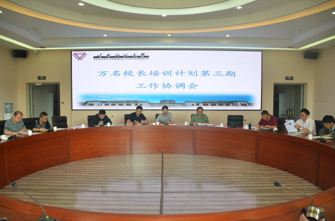 8月28日上午,云南省“万名校长培训计划”项目第三期工作协调会在fun88官网呈贡主校区国家教师教育教学实验中心201会议室召开。校党委副书记张玮、副校长武友德,党办、校办、组织部、宣传部、校工会、人事处、教务处、计划财务处、信息管理处、保卫处、资产处、后勤保障处、图书馆、资产经营公司、本科教学质量监控与评估中心、校医院、云南西南联大干部教育学院负责人,项目办公室全体人员参加了会议。会议由张玮副书记主持。