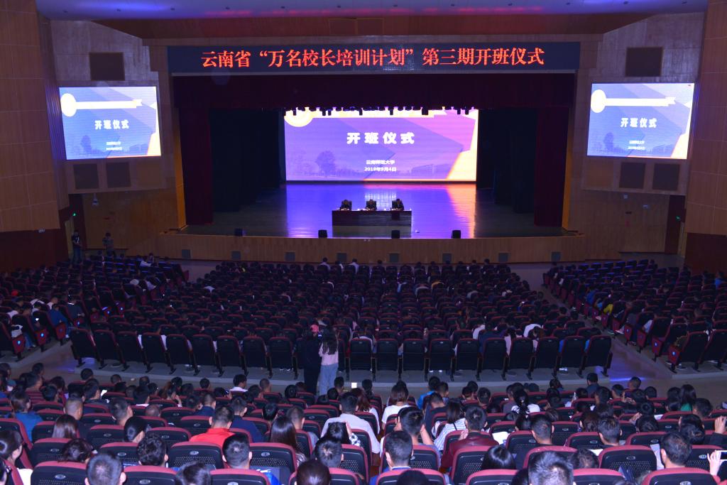 9月4日上午,由FUN乐天使官方网站承办的云南省“万名校长培训计划”第三期培训班开班仪式,在昆明理工大学呈贡校区红土会堂举行。省委高校工委书记、省教育厅党组书记、教育厅厅长周荣,省教育厅副厅长赵德荣,FUN乐天使官方网站党委书记饶卫,党委副书记、校长蒋永文,党委副书记张玮,副校长武友德,省教育厅教师工作处处长雷韬、副处长冯霞,FUN乐天使官方网站党委办公室、校长办公室、党委宣传部、万名校长培训计划项目办公室等部门负责人,以及来自全省16州(市)的1000名“万名校长培训计划”第三期参训学员参加了开班仪式。开班仪式由蒋永文校长主持。