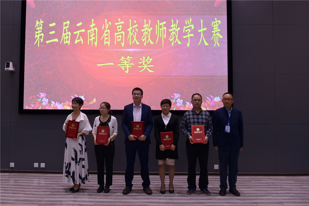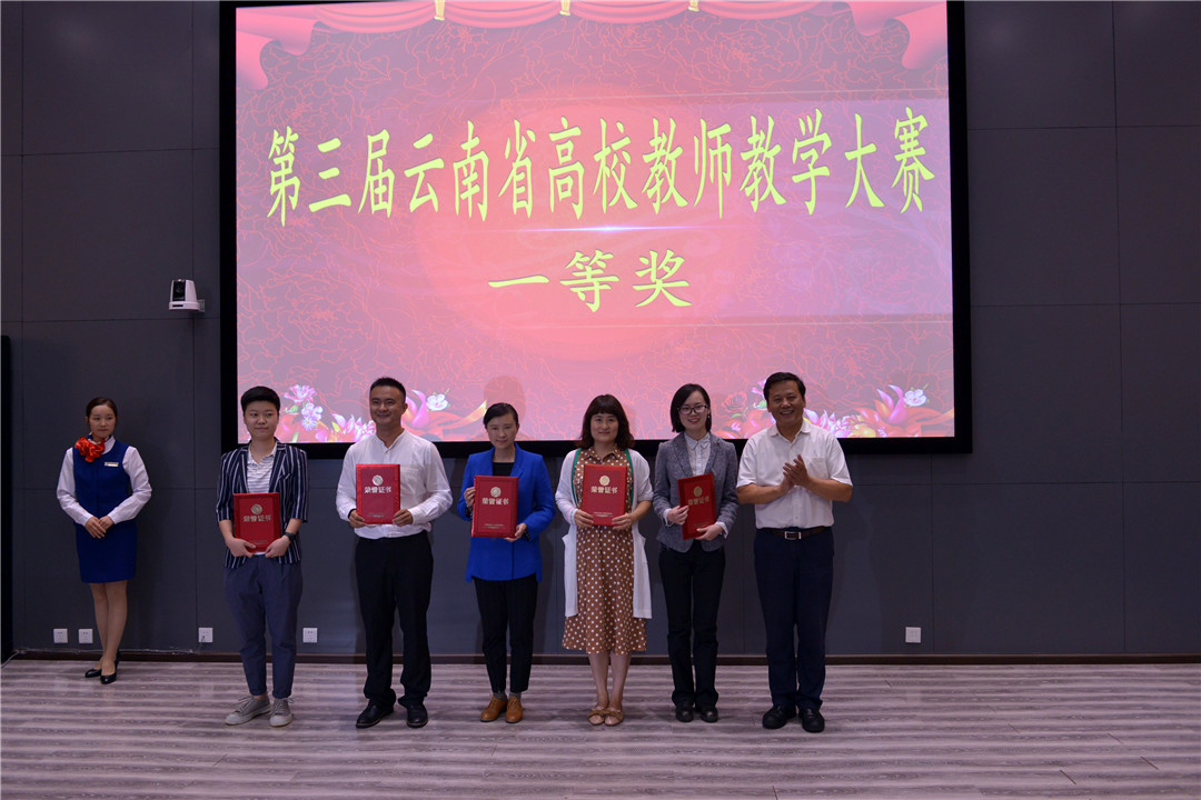 云南省教育厅高教处卢明处长宣读了获奖名单,与会领导为获奖单位和获奖教师颁奖。