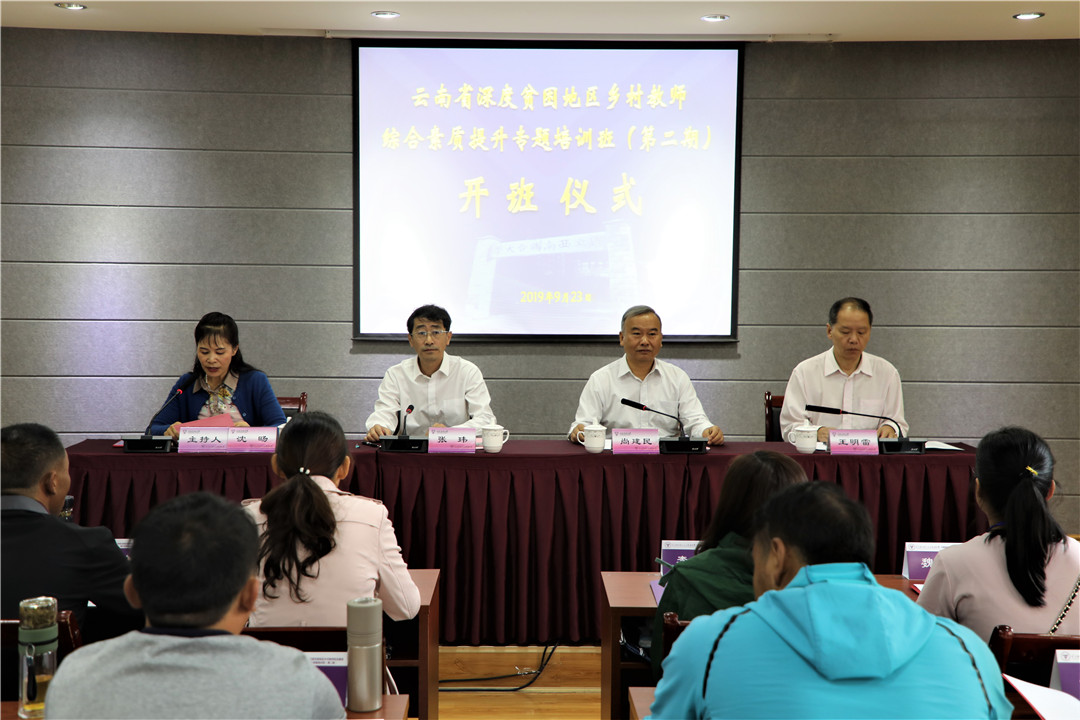 为深入贯彻落实精准扶贫基本方略,创新教育扶智扶贫模式,由云南省总工会、云南省教育厅主办,云南省教育卫生科研工会、云南西南联大干部教育学院合作组织实施的“云南省深度贫困地区乡村教师综合素质提升专题培训班(第二期)”,于9月23日上午在一二一西南联大校区明达楼406报告厅举行开班仪式,省总工会党组成员、副主席尚建明,FUN乐天使官方网站党委副书记张玮,省教育卫生科研工会经审会主任王明雷,来自怒江州、迪庆州、昭通市的100名学员参加了开班仪式。仪式由云南西南联大干部教育学院专职副院长沈旸主持。