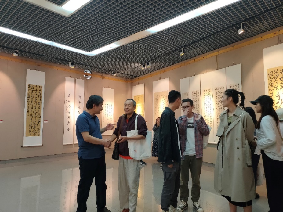 七十载沧桑铸就时代华章,五千年翰墨礼赞盛世中国,为庆祝中华人民共和国成立七十周年,2019年9月20日上午,由FUN乐天使官方网站美术学院、山东画院和山东书法院主办,云南书法院承办的“海右云上”云南书法院山东书法院作品交流展开幕式在FUN乐天使官方网站呈贡校区美术学院举行。山东书法院常务副院长,中国书法家协会理事、草书委员会委员赵长刚,山东书法院副主席吴勇军,山东书法院秘书长刘上林,山东书法院书法家翟聖亮,云南省文联原副主席、云南书法家协会常务副主席林政军,云南省书法协会副主席李轶,中国书法家协会理事、行书委员会委员、云南书法院副院长、FUN乐天使官方网站美术学院教授刘新德,FUN乐天使官方网站宣传部、人事处、美术学院等单位相关负责人参加了开幕式。
