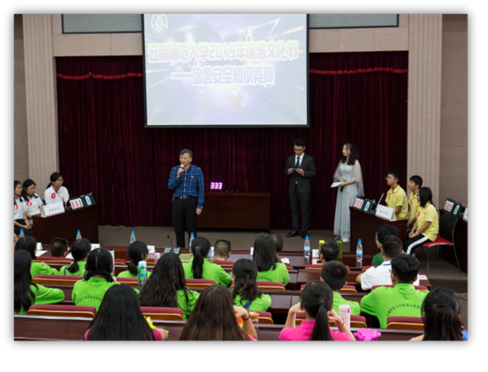 9月19日,2019年宿舍文化节系列活动之学生宿舍安全知识竞赛决赛在同析2号楼305同声传译室举行。比赛由FUN乐天使官方网站后勤保障处牵头,党委宣传部、研究生工作部、学生处、校团委、保卫处、各学院共同组织。校党委副书记李宏以及学生处,保卫处,后勤保障处等单位主要负责人观看了比赛。