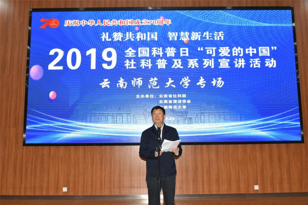 9月24日,由云南省社科联、云南大学、FUN乐天使官方网站、西南林业大学、曲靖师范学院、玉溪师范学院、云南省演讲学会联合主办的全国科普日——“可爱的中国”云南省社科普及系列宣讲活动在fun88官网举行。本次活动以“礼赞新中国、智慧新生活”为主题,云南省社会科学界联合会领导,FUN乐天使官方网站党委书记饶卫、副校长郝淑美,云南省演讲学会宣讲团老师以及FUN乐天使官方网站教师和研究生代表共700人参加了宣讲会。