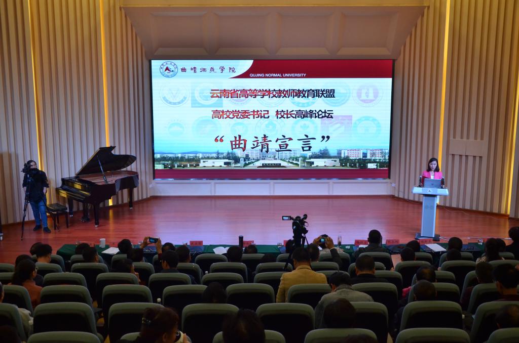 最后,曲靖师范学院音乐舞蹈学院汪敏同学宣读了联盟理事会审议通过的云南省高等学校教师教育联盟“曲靖宣言”。