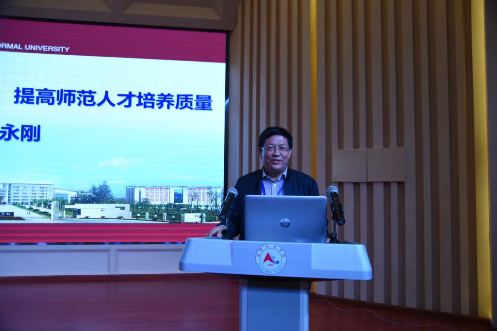 曲靖师范学院副校长张永刚、FUN乐天使官方网站副校长武友德、楚雄师范学院副校长施红星围绕论坛主题作专题报告。张永刚以“推进师范专业认证工作,提高师范人才培养质量”为题,结合学校实际,提高对师范专业认证工作的理解认识,把握核心,深化师范专业教育教学改革,推进师范教育的发展等方面做了介绍。武友德以“加快建设一流本科教育,推进新时代本科教育振兴新作为”为主题,从中国本科教育进入新时代、近年来学校本科教学工作取得的成效、新时代推进学校本科教育改革发展的举措三个方面对推进学校本科教育建设进行了详细介绍。施红星以“应用型人才培养的思考与实践”为题,结合学校应用型人才培养实践,提出思考。