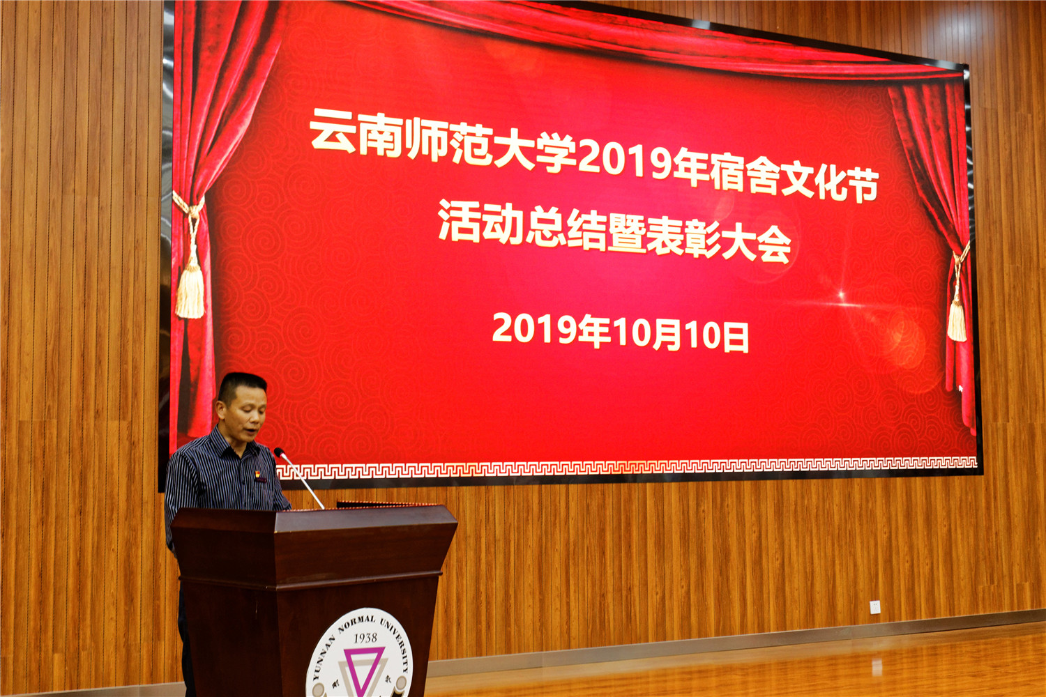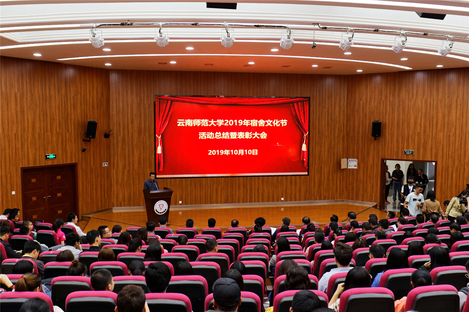 2019年10月10日下午,fun88官网2019年宿舍文化节活动总结暨表彰大会在呈贡主校区汇学楼2栋101报告厅举行。校党委副书记李宏,副校长牛治亮,党委组织部、党委宣传部、研究生工作部、学生处、校团委、保卫处、后勤保障服务中心等部门负责人,各学院党委副书记、教师代表,获奖学生代表等参加了表彰会。会议由学生处处长杨卫国主持。