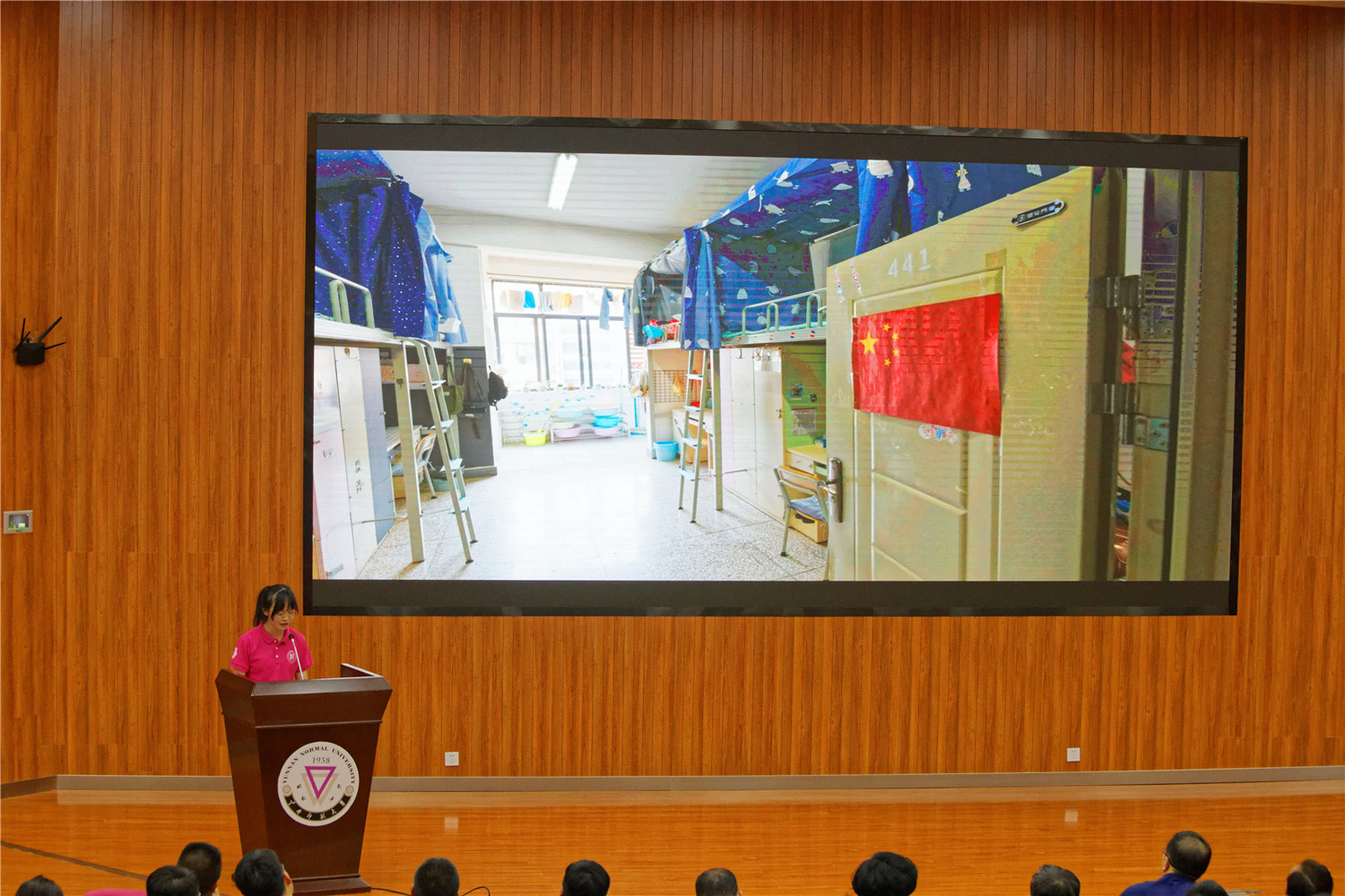 数学学院党委副书记朱林作为优秀学院代表进行交流发言,分享数学学院在宿舍文化建设工作中取得成绩和经验。为做好宿舍文化建设,数学学院采取了宿舍管理与文化熏陶相结合的方式,定期召开宿舍长大会,把宿舍文化建设的重要性更好的传达给学生,让学生们真正爱上宿舍。为让宿舍标准化达标率得到提升,改善宿舍安全卫生情况,落实宿舍文化建设,学院梳理出优差宿舍,并对宿舍优差情况进行了分析,通过科学的分析总结出更为有效的管理方法,并将分析结果现场与校领导和各部门分享。