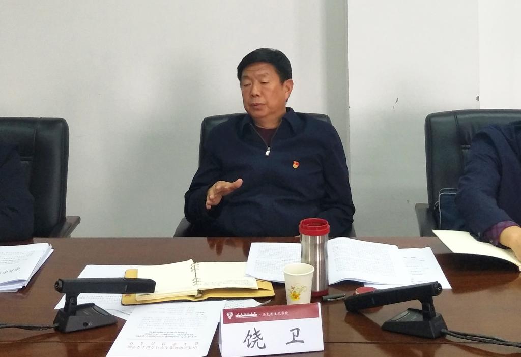 10月15日上午,校党委书记饶卫到马克思主义学院开展“不忘初心、牢记使命”主题教育调查研究工作并召开座谈会。校党委副书记李宏、副校长安学斌以及党委办公室、校长办公室、党委组织部、党委宣传部、教务处、人事处等部门主要负责人,马克思主义学院“不忘初心、牢记使命”主题教育全体成员和师生党员代表参加调研座谈会。