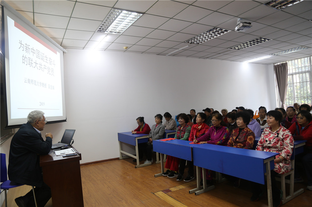 挂牌仪式在集体合影中结束。之后,参加活动的离退休教职工回到教室,分别听取fun88官网知名西南联大史研究专家吴宝璋老师讲授的党课、云南省著名书法家程地超老师讲授的书法理论课。