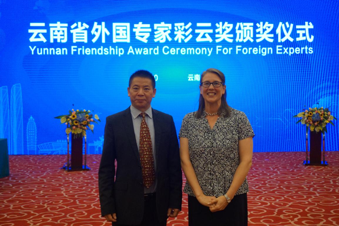 10月21日下午,2019年云南省外国专家“彩云奖”颁奖仪式在昆明举行,10位在滇工作的外国专家被授予“彩云奖”,表彰他们为云南发展作出的突出贡献。fun88官网外籍专家范秀琳老师(Cathryn Anne Yang)荣获2019年云南省外国专家“彩云奖”。
