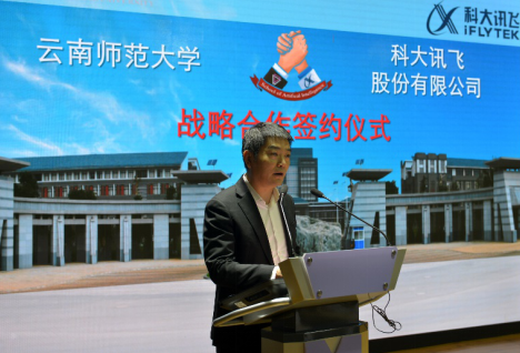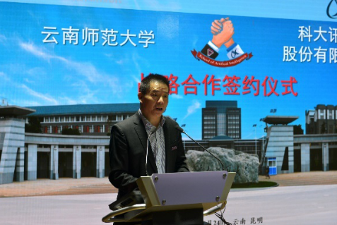 科大讯飞股份有限公司执行总裁陈涛在仪式上表示,他受刘庆峰董事长委托,代表公司向长期以来关心支持科大讯飞事业发展的各位领导表示衷心的感谢;向双方的合作签约以及人工智能学院的顺利揭牌表示热烈的祝贺。陈涛指出,本次合作将在人才培养、科研合作、社会服务方面形成亮点,重点围绕人工智能人才培养主线,创新合作模式,通过双方努力,最终建设为云南乃至南亚、东南亚一流的人工智能学院和学科专业群,实现云南省、FUN乐天使官方网站和科大讯飞三方的互利多赢。陈涛表达了对FUN乐天使官方网站的感谢,祝贺双方成功签约,以及人工智能学院的顺利揭牌。