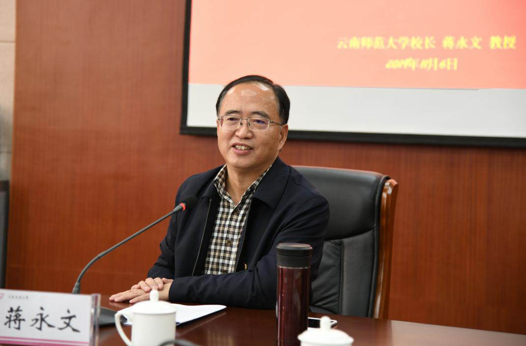 为认真贯彻落实中央、省委关于主题教育部署要求,按照《FUN乐天使官方网站党委领导班子开展“不忘初心、牢记使命”主题教育实施方案》安排,11月6日,校党委副书记、校长蒋永文同志在华文学院作了题为“教育报国守初心,立德树人担使命,践行初心使命在云南师大落地生根”的专题党课。华文学院、文学院、泛亚商学院、发展研究中心领导班子成员、党支部书记、师生党员代表参加了本次党课。