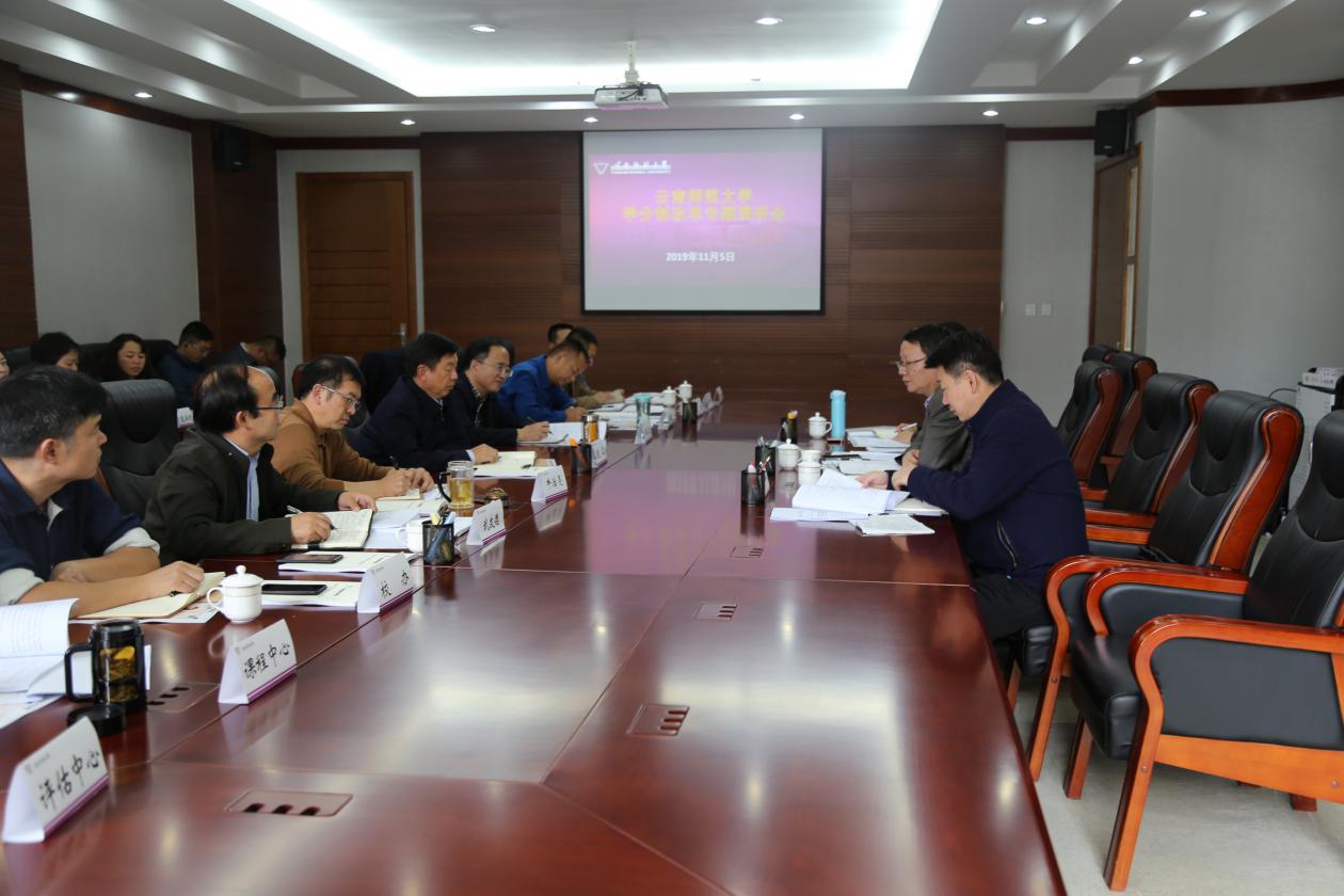 会上,陈世波副书记就调研学分制改革工作的相关背景作了介绍,并认真听取了fun88官网学分制改革工作的汇报。武友德副校长从学校学分制改革总体方案、组织架构、推进步骤、支撑条件、保障制度等方面向调研组详细汇报了目前学校学分制改革所做的工作。fun88官网学分制改革从2019级新生开始试行,在2018年学校先期开始规划布置的基础上,成立了学生中心、课程中心和教师中心相互联动、构成有机整体相互支撑,进一步加强教师聘用、学生服务、教师资源、课程资源等各环节各要素之间的高度融合。专门配置经费、场地、人员编制,实施信息化手段下的“一站式”服务;他还从尽快出台实施办法、完善学业导师制、落实学生四个自主情况、人事制度改革、绩效分配、课程建设水平、课堂教学标准评价、学风建设、教学方式改革等方面作了工作汇报;安学斌副校长从人事制度、教师资源配置、绩效考核、激励机制等方面作了交流发言。学生处、本科教学质量监控与评估中心、物理与电子信息学院、哲学与政法学院负责人分别从各自部门学分制改革推进进度、工作内容、存在问题和困难、下一步工作开展安排等方面作了交流发言。