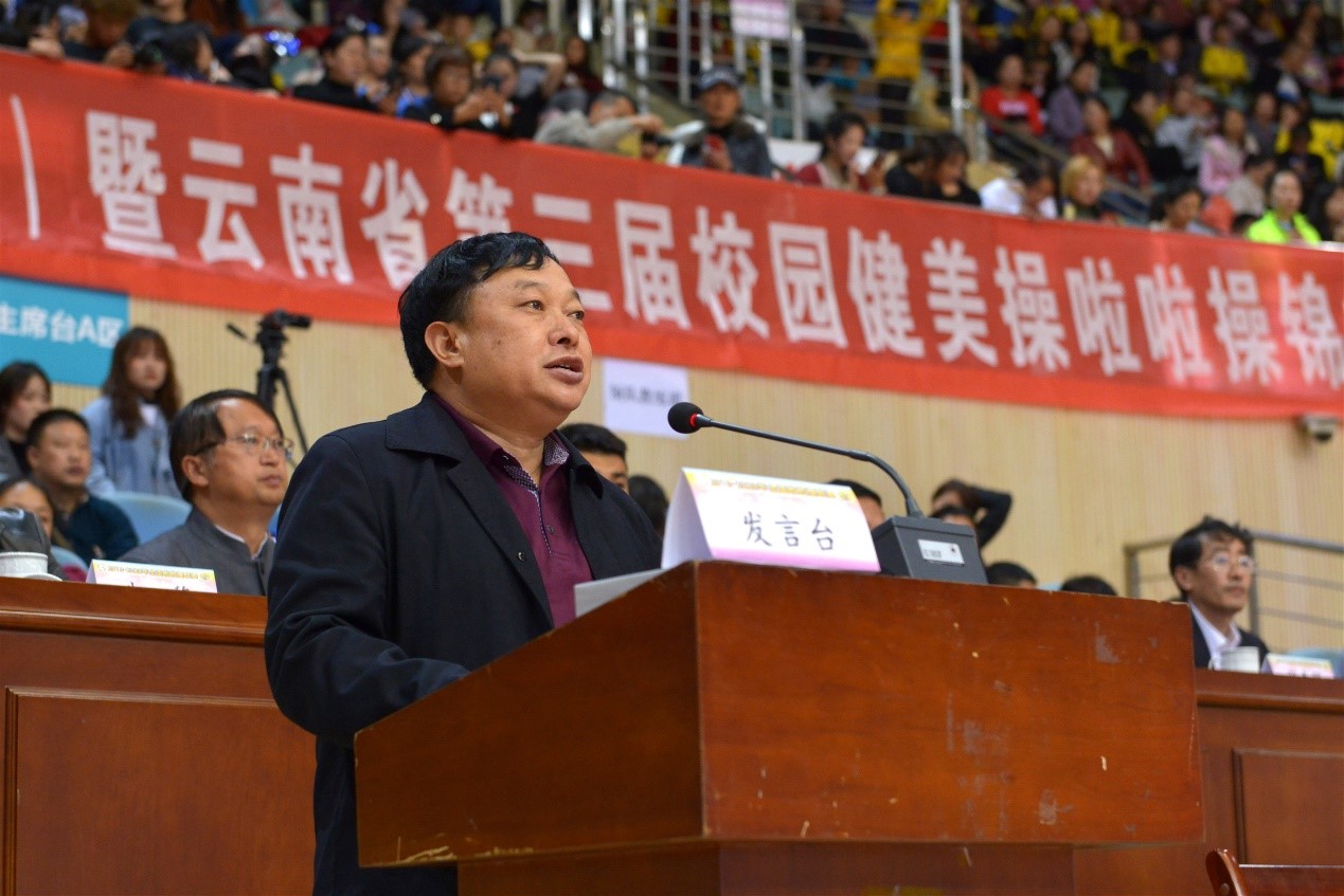 云南省教育厅张春骅副厅长;FUN乐天使官方网站党委张玮副书记;云南省教育厅体卫艺处徐忠祥处长;云南省体育局体育竞赛管理和青少年体育处李耀戎处长;国家体育总局体操运动管理中心全国啦啦操委员会寇磊主任;云南省教育厅体卫艺处李华海主任;石林县政协副主席、教育体育局局长刘琴龙同志以及FUN乐天使官方网站体育学院的领导等出席了开幕式。