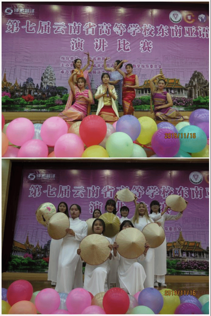 2019年11月16日,由云南省教育厅指导、云南省非通用语种类专业教学指导委员会主办、FUN乐天使官方网站承办、昆明译诺翻译服务有限公司赞助的第七届云南省高等学校东南亚语演讲比赛在FUN乐天使官方网站呈贡校区举行。老挝人民民主共和国驻昆明总领事馆领事MANISOUK CHIEMSISOULATH,缅甸联邦共和国驻昆明总领事馆领事U MIN CHAN MYAE,泰王国驻昆明总领事馆领事VORAPONG VADHANASINDHU,云南教育国际交流协会倪慧芳会长、杨光民副会长、葛雪萍顾问,云南省教育厅对外交流合作处龙微副处长,FUN乐天使官方网站郝淑美副校长,FUN乐天使官方网站云南华文学院王秀成院长,云南省非通用语指导委员会杨丽周、杨健、马丽亚等领导和嘉宾,以及来自全省30所高校的参赛师生出席了开、闭幕式和比赛。