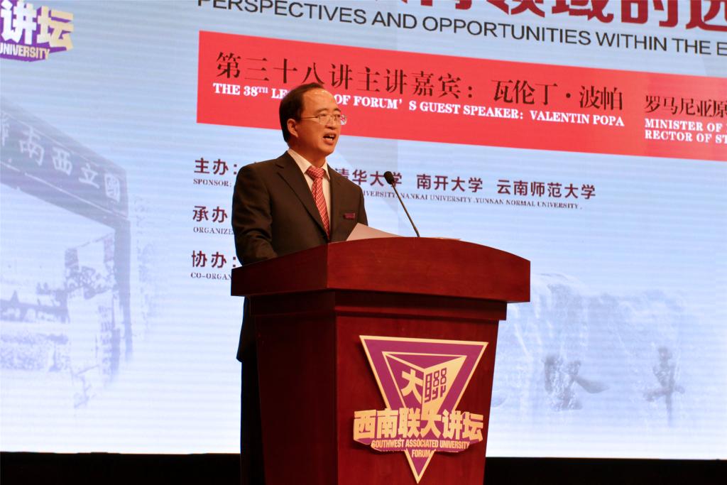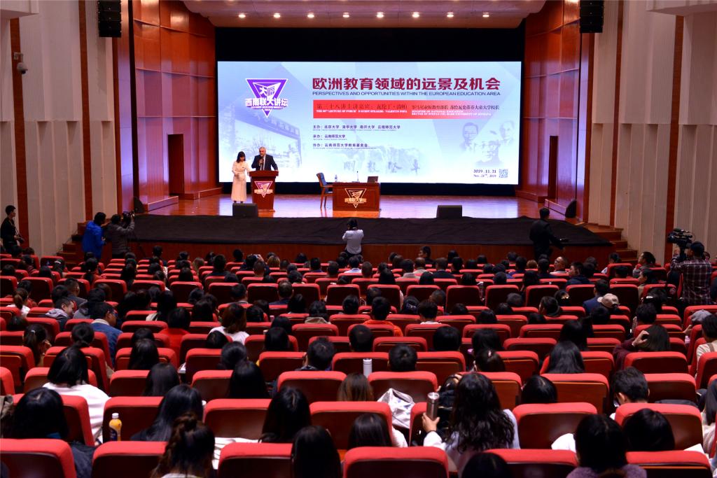 11月21日下午,西南联大讲坛第三十八讲在fun88官网呈贡主校区明德五号楼演播厅举行。西南联大讲坛嘉宾中的第一位海外校长——苏恰⽡史蒂芬大帝⼤学校长瓦伦丁·波帕做客讲坛,带来了题为《欧洲教育领域的远景及机会》的精彩演讲。贵州星臣教育执行总裁陈菓、副总裁杨晔鹏、课程开发经理唐珂,FUN乐天使官方网站校长蒋永文,昆明学院副校长马银海,以及师生代表600余人共同聆听了本次讲座。