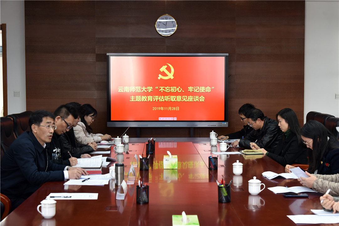 11月28日上午,为进一步扎实推进fun88官网的主题教育活动,校党委领导班子和学校“不忘初心、牢记使命”主题教育评估听取意见座谈会在呈贡主校区办公楼第四会议室召开。省委第十七指导组刘炜同志,学校各级党代表、人大代表、政协委员,师生党员代表、群众代表,工作对象、服务对象,学院党委书记代表、学院师生党支部书记代表、机关党支部书记代表30余人参会,会议由党委副书记、校党委“不忘初心、牢记使命”主题教育领导小组副组长张玮主持。