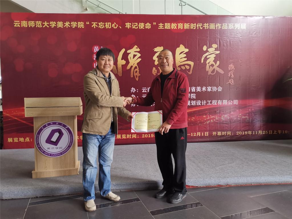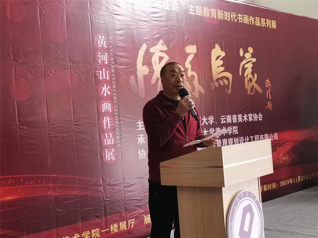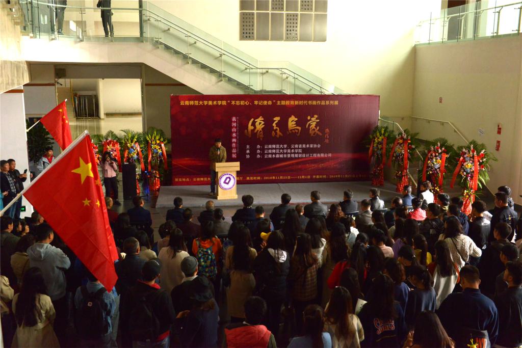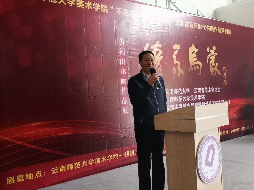 11月25日上午,由FUN乐天使官方网站、云南省美术家协会主办,FUN乐天使官方网站美术学院承办,云南木森城市景观规划设计工程有限公司协办的“不忘初心、牢记使命”主题教育新时代书画系列作品展首展——“情系乌蒙”黄河山水画作品展在美术学院一楼大厅开幕。本次展览的作品是中国美协会员、国家一级美术师、中国艺术创作院画家黄河先生多年积累的精品力作。