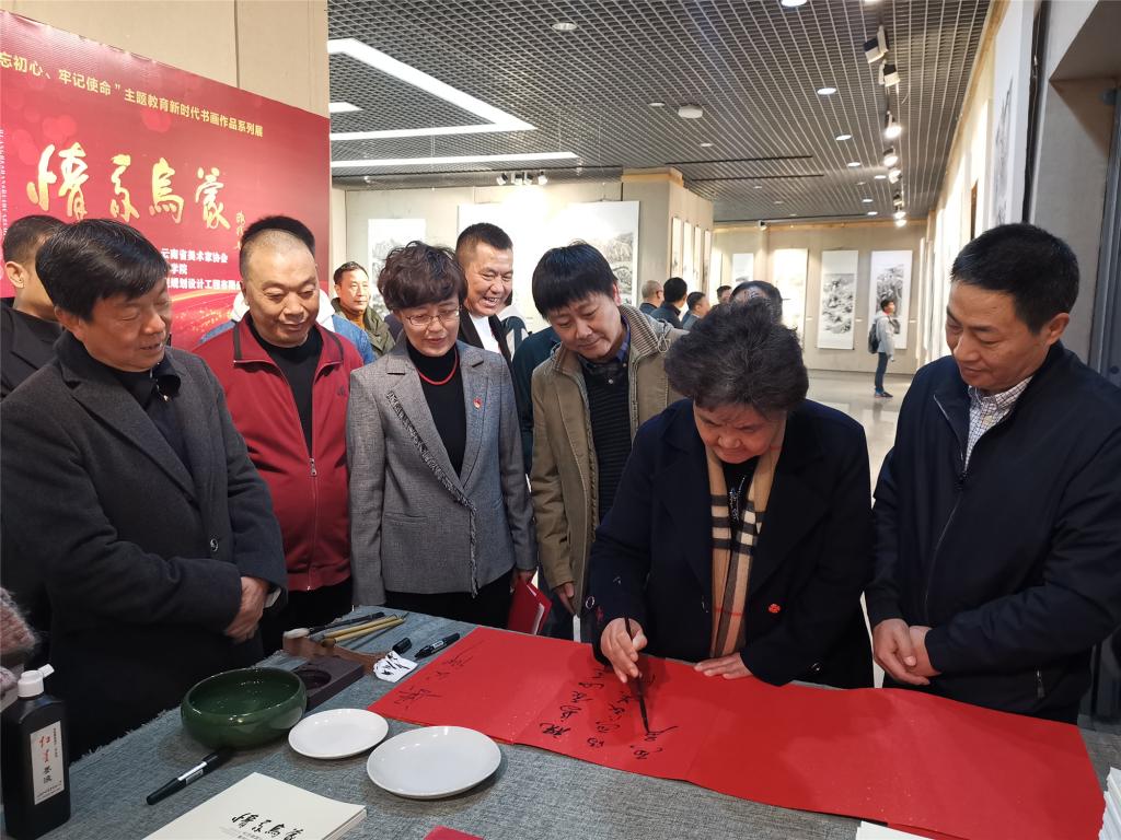 美术学院举办“不忘初心、牢记使命”主题教育新时代书画系列作品展是为丰富主题教育形式,引导广大师生党员坚定文化自信、传承弘扬中华优秀文化,促进主题教育入脑入心,取得扎扎实实的成效,承担起举旗帜、聚民心、育新人、兴文化、展形象的职责和使命而进行的创新尝试,旨在鼓励师生以艺术的形式记录和展现,在党的领导下,改革开放以来特别是党的十八大以来,我国社会主义建设的伟大成就、社会的巨大变革,人民群众昂扬向上的精神面貌,讴歌奋斗人生,刻画最美人物,弘扬中国精神、凝聚中国力量,引导广大师生党员通过作品欣赏感悟生活、感谢时代、感恩祖国,坚定理想信念。(美术学院 供稿)