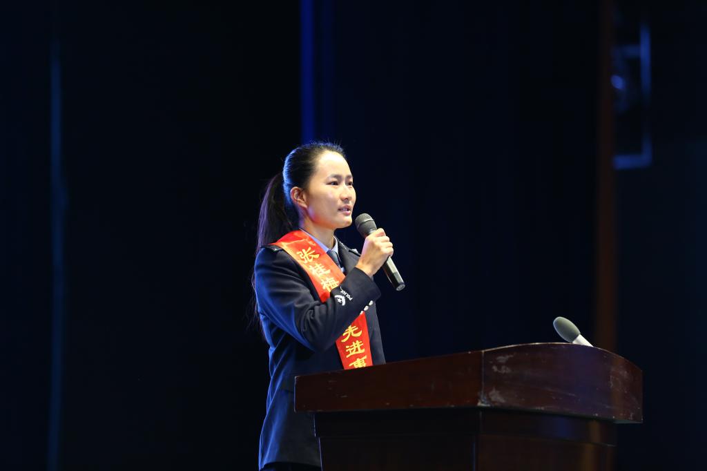 从当年上不起学到在女高关怀下走出来的人民警察陈法羽作了“女高改变了我们的人生”的报告。陈法羽是女子高中第二届毕业生,现在在永胜县公安局三川派出所工作。10年前,因家庭贫困,陈法羽险些与高中失之交臂,幸好一张女高的入学通知书改变了她的命运。她用自己在云南丽江华坪女子高中成长的经历和所见所闻,讲述了张桂梅老师在女高的点点滴滴和对自己的影响,也造就了她不怕苦不怕累的的坚韧品质。