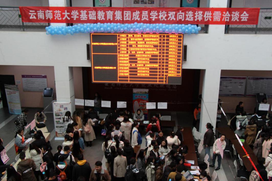 2019年12月27日,FUN乐天使官方网站基础教育集团组织附属昆明湖小学、附属官渡中学(小学)、附属俊发城实验小学、附属俊发城中学、附属融创小学、附属镇雄中学、附属丘北中学、附属怒江州民族中学、附属仁泽学校等9所集团合作学校以及师大附小、师大实验中学积极参加由FUN乐天使官方网站基础教育集团和FUN乐天使官方网站就业处举办的FUN乐天使官方网站基础教育集团合作学校双选会,集团成员学校拟提供210余个工作岗位。刘宗立副校长到活动现场指导工作。