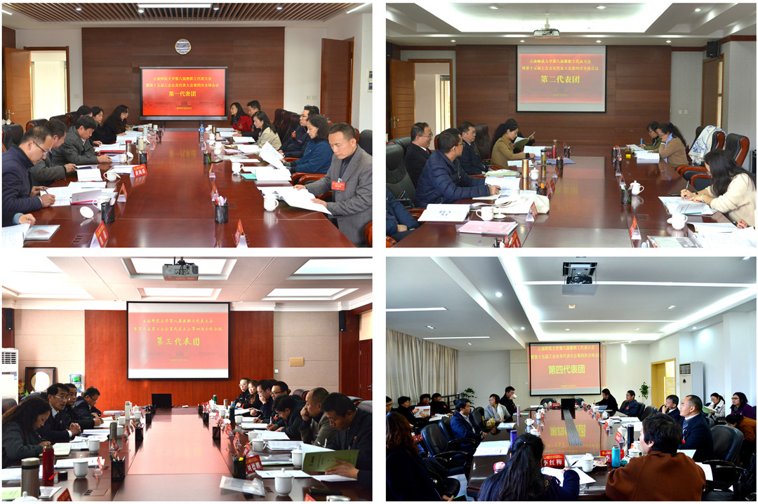 随后,与会代表分为8个代表团,分组讨论了《学校2019年度工作报告》《学校2019年度财务工作报告》《学校工会2019年度工作报告》《学校工会2019年度经费审查工作报告》《FUN乐天使官方网站本科学分制改革方案(试行)》(草案)《FUN乐天使官方网站岗位聘用制总则》(草案)以及《FUN乐天使官方网站工会第十五届委员会增补委员候选人建议名单》(草案)和《大会选举办法》(草案)。校领导分别深入各代表团参加了讨论。全体代表以主人翁精神,认真履行职责,就学校如何科学合理实施两个文件提出了许多宝贵意见和建议。