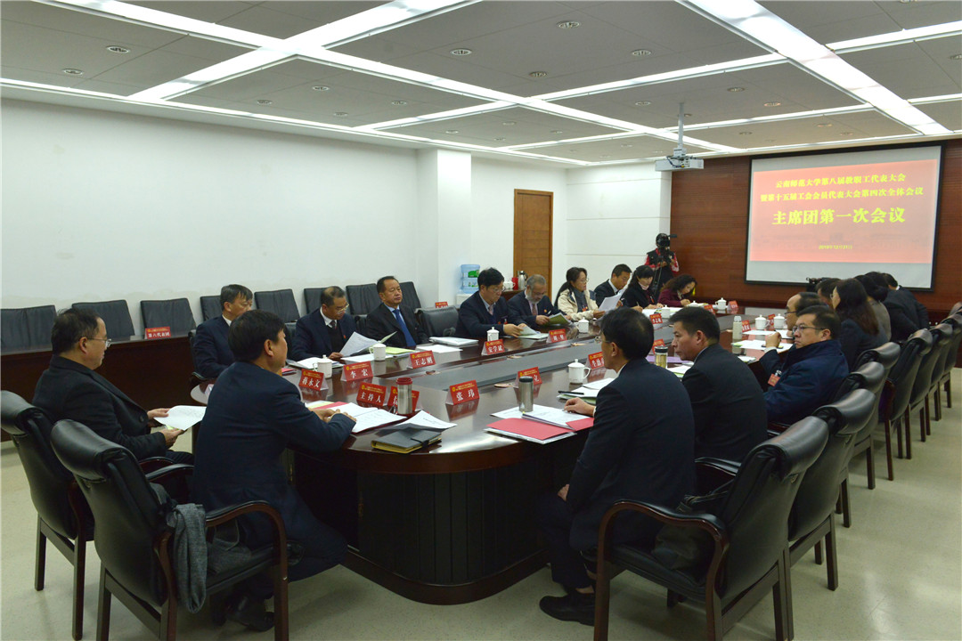 第八届教代会暨第十五届工代会第四次全体会议第一次全体代表大会召开前举行了主席团第一次会议和预备会议,听取了部分代表变动情况的说明,全票通过了会议议案表决办法(草案)、会议主要议程(草案)、会议执行主席分组名单(草案)和FUN乐天使官方网站工会第十五届委员会增补张玮、郑伟俊为委员候选人的建议名单(草案)。