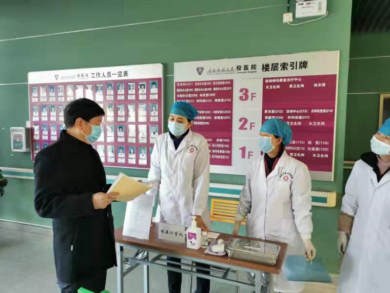 2月1日下午,校党委书记饶卫,党委副书记张玮、李宏,副校长刘宗立、郝淑美以及相关职能部门负责同志,先后来到呈贡校区学生宿舍、食堂、校医院、保卫处等,检查指导fun88官网疫情防控工作,并慰问留校值班的教职员工。